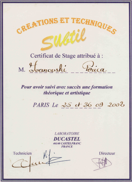 Секој успех на бројните интернационални семинари, работилници, модни настани и случувања во најголемите европски модни центри, како и на реномираните регионални и домашни манифестации во изминатиот едно и пол децениски период на неговото кретивно-уметничко творење, за овој неуморен трагач по „неоткриеното“ му поттикнува нови визии, нови стремежи.